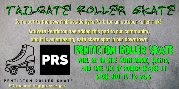 PRS expects to host a Tailgate Roller Skate FREE event at the new outdoor rink that was created by Activate Penticton. This amazing new structure in our downtown transformed into a roller rink under the sky.